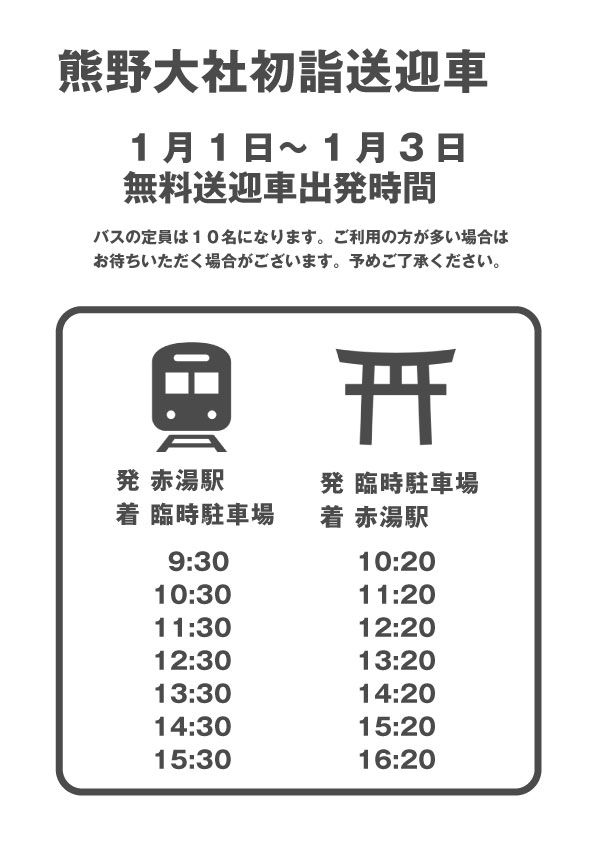 令和4年お正月の臨時送迎車を運行致します。