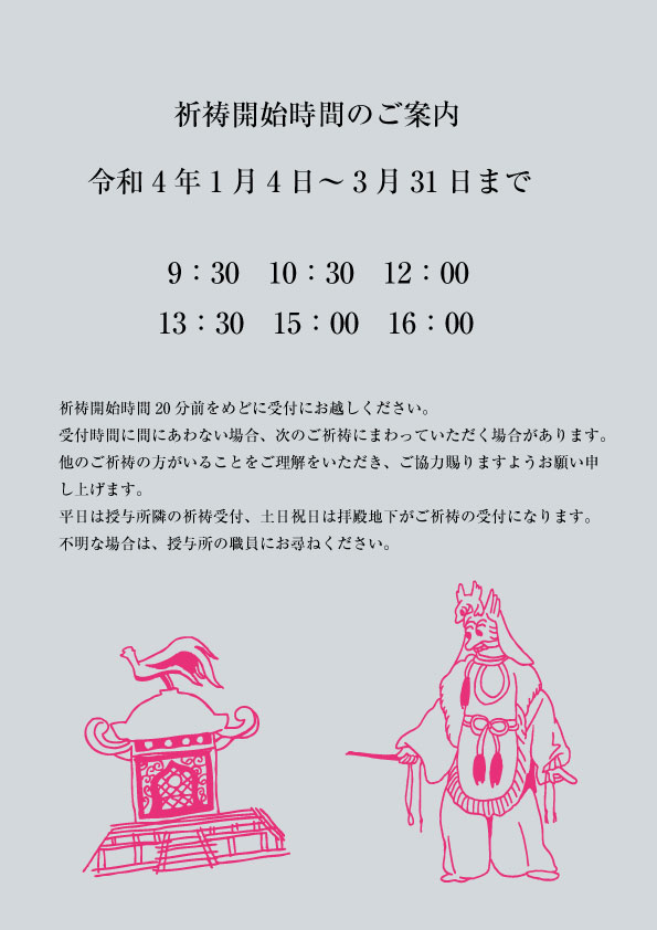 1月4日以降の祈祷開始時間のご案内