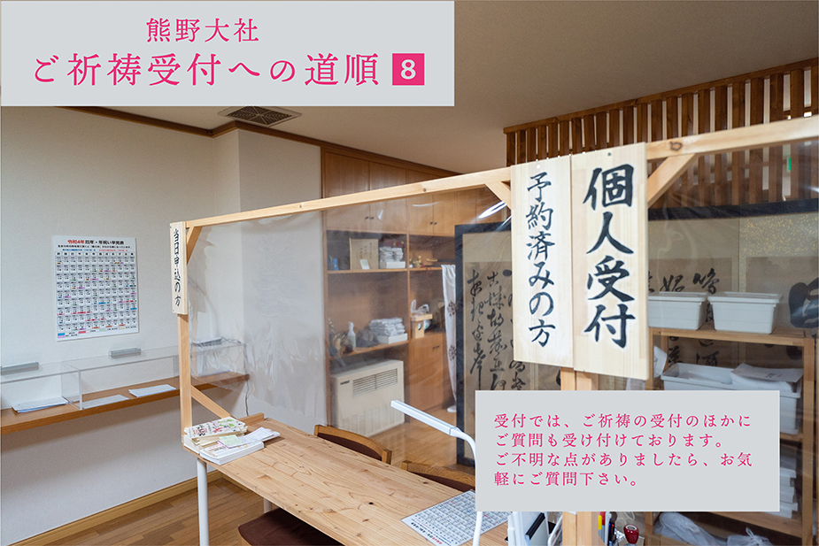 ご祈祷受付にお越しの旨を職員にお伝えください。
