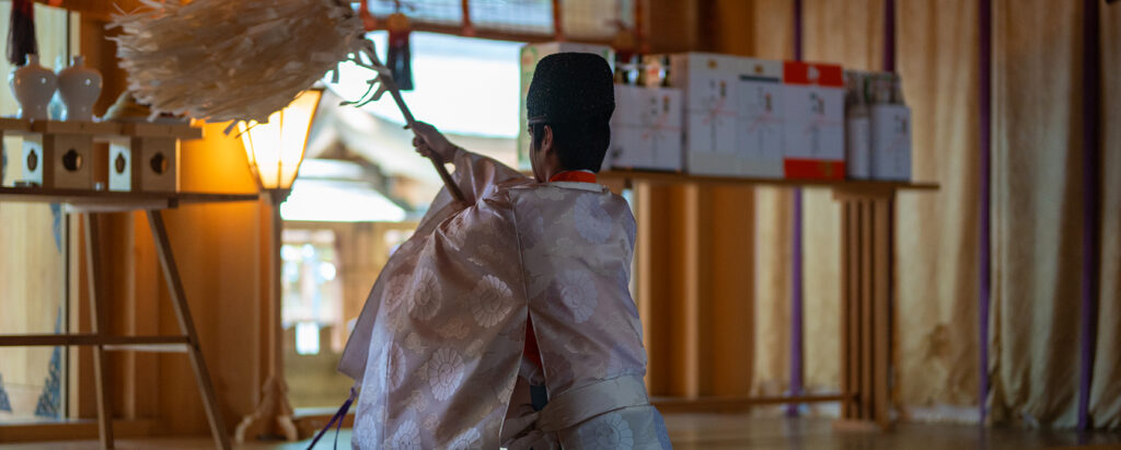 その昔、「神楽波」を「さざなみ」と読んだといわれます。昔の人は、神楽の心地よい音色に穏やかな波の様子をかさねたのかもしれません。縁結び祈願祭「かなで」では、境内に飾られた風の音ふうりんの音色とともに、拝殿で太々神楽が奏でられ、ご祈祷が執り行われます。