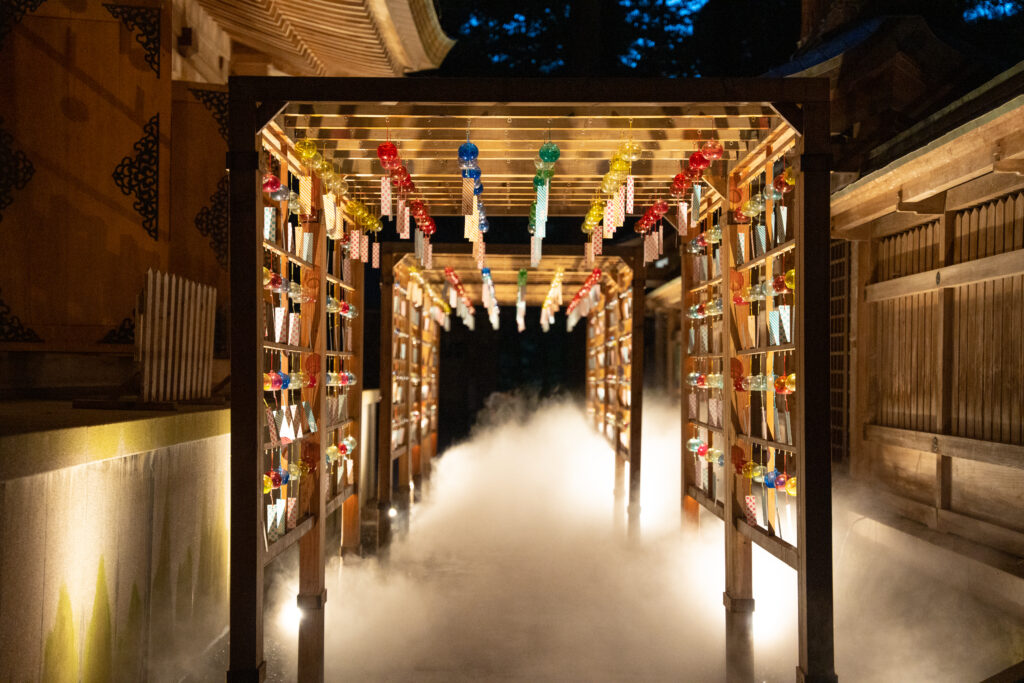 ほのかな灯りと風の音風鈴の音色に想いを馳せる特別な時間。夏の夜に、祈りとともに美しい心を育む夏季限定ライトアップ「ほのか」は下記の日程で執り行われます。