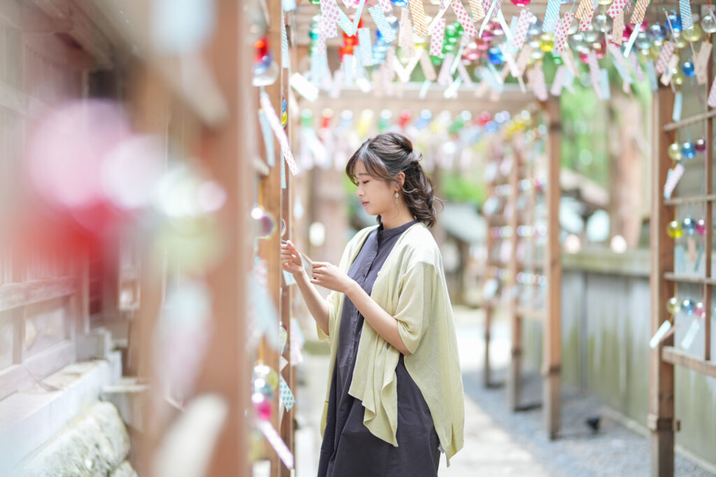 風の音ふうりんにご自身の願いをたくして境内に納めてみませんか。ご奉納いただいた方のお名前はご神前に奉告し、ご自身の願いとともに境内にお祀りさせていただきます。また、ご奉納いただいた証として風の音風鈴の限定御朱印をお渡ししています。お申し込みは神符授与所、HPよりお申込み可能です。なお、HPよりお申込みされた方は、当社で代筆でお願い事を記載させていただきます。お申込みの際にご自身のお願い事をお選びください。