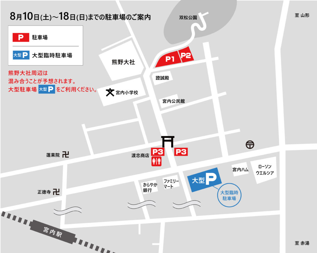 大型臨時駐車場をご用意しておりますので、そちらを優先的ご利用いただきますようお願い致します。